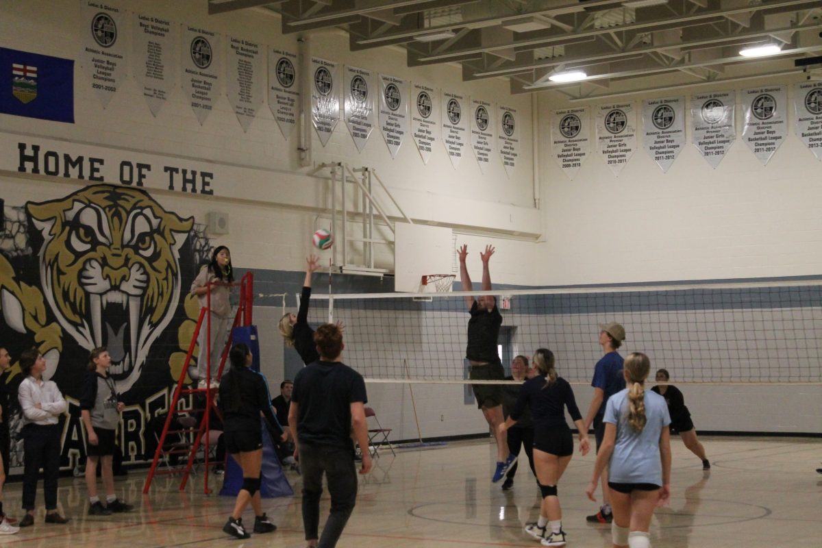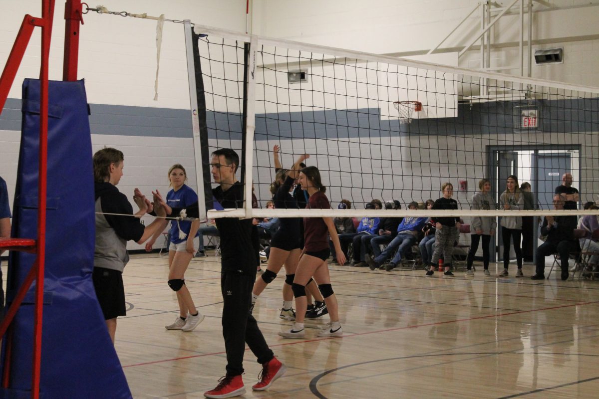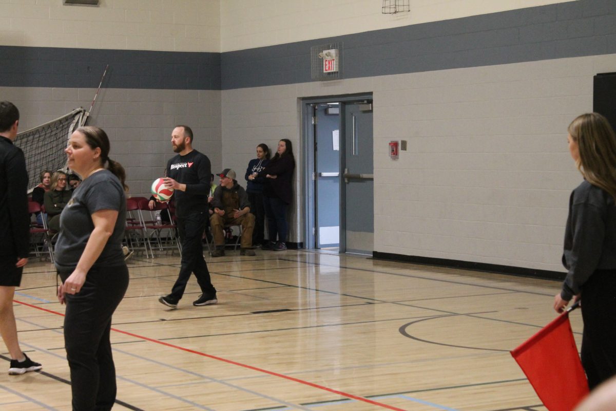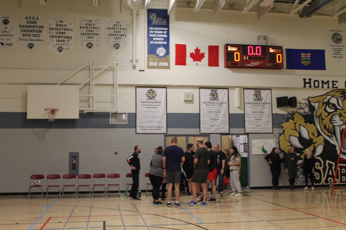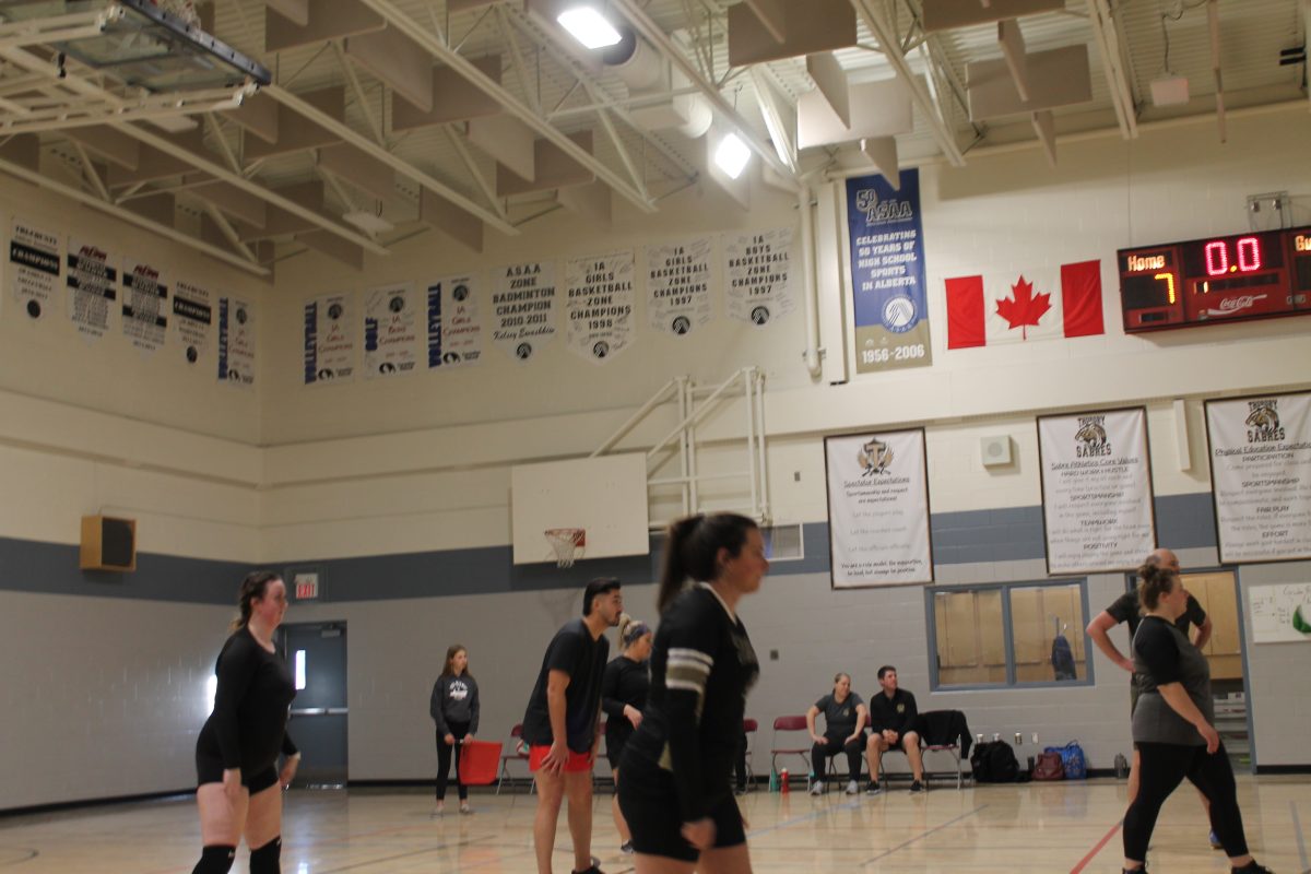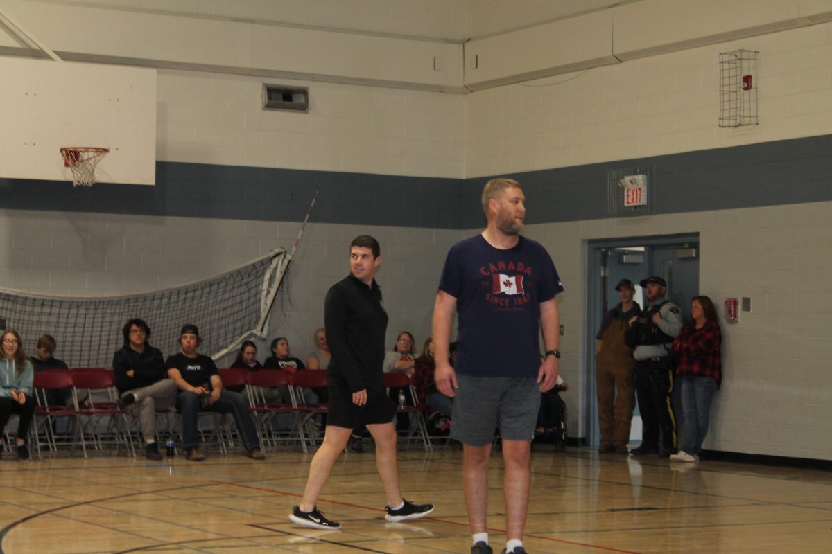 Last Friday we kicked the staff vs student games off with our first of four that will be taking place this year! The staff were up against some strong competition this year as many of the players were on the Sr. Girls volleyball team that placed 2nd at their zone tournament. 3 sets were played in total the staff narrowly defeated the students 2 sets to 1. All sets were within 5 points of each other and could have gone either way. The students always enjoy playing against the staff and they enjoy it even more when the community members are able to play. Volleyball had special guests RCMP officers Dino and joining the team.