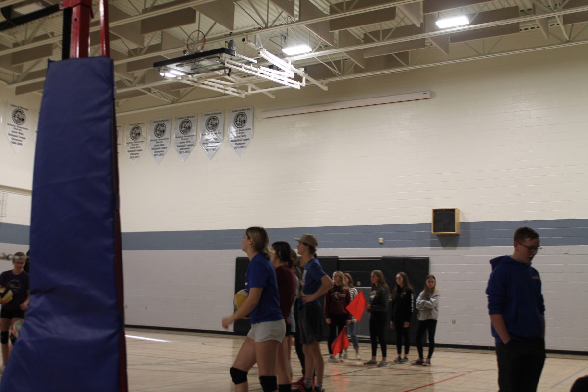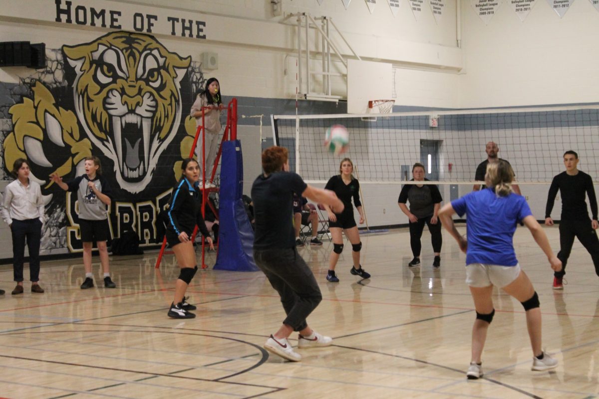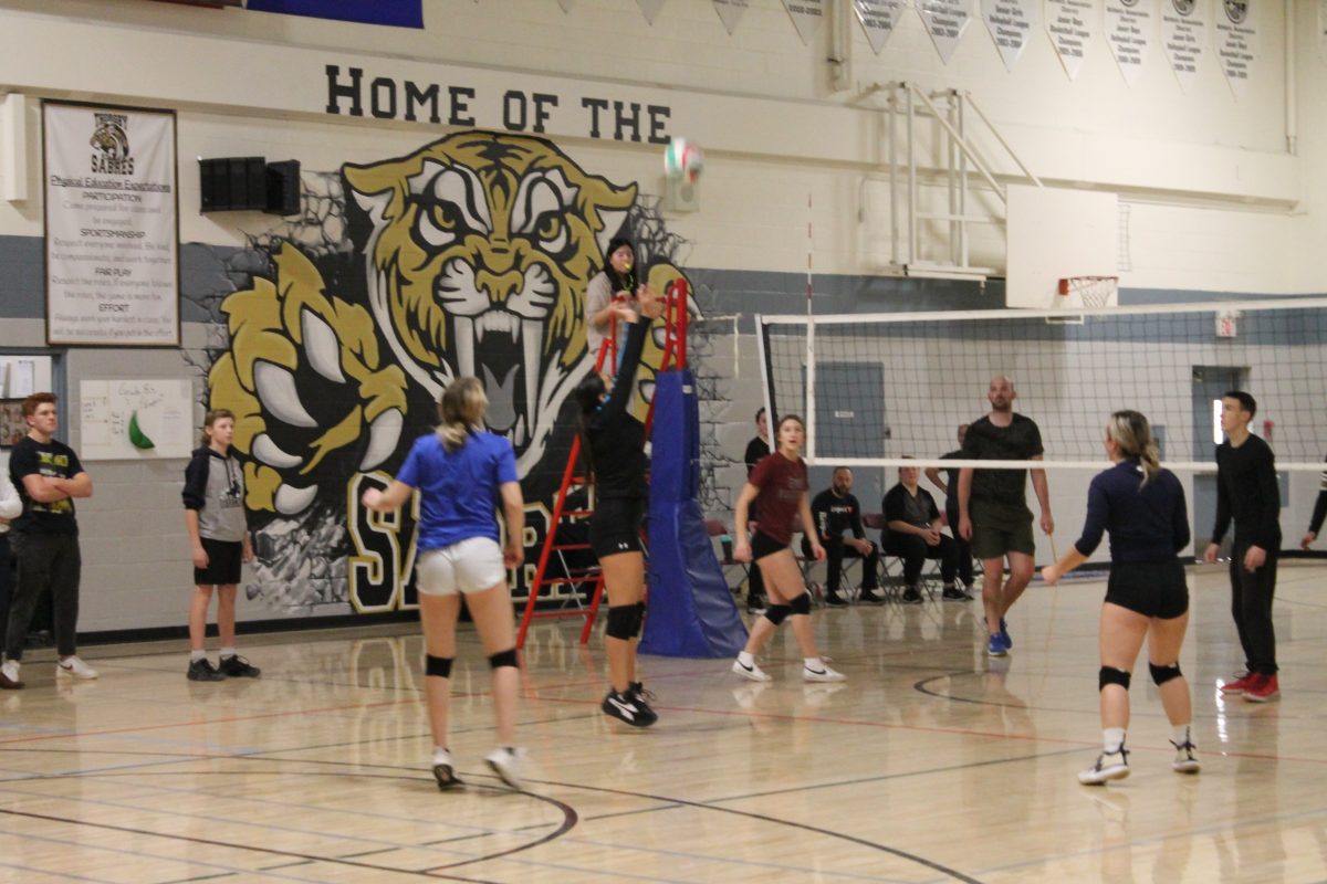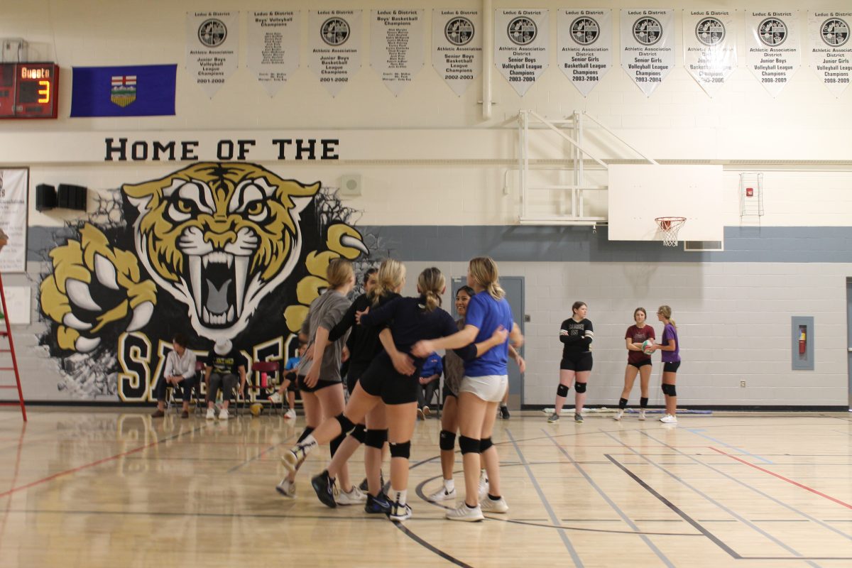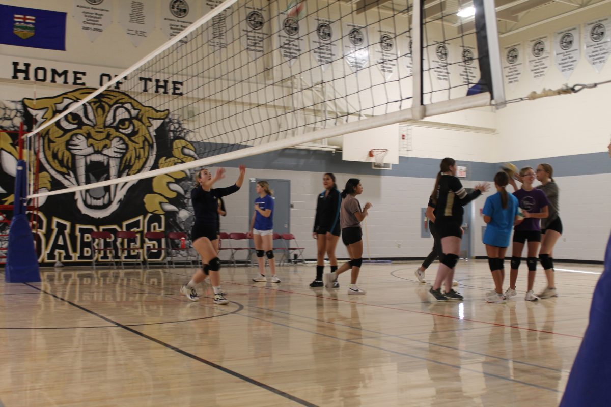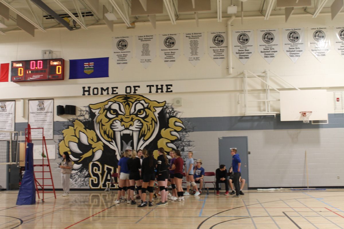 Last Friday we kicked the staff vs student games off with our first of four that will be taking place this year! The staff were up against some strong competition this year as many of the players were on the Sr. Girls volleyball team that placed 2nd at their zone tournament. 3 sets were played in total the staff narrowly defeated the students 2 sets to 1. All sets were within 5 points of each other and could have gone either way. The students always enjoy playing against the staff and they enjoy it even more when the community members are able to play. Volleyball had special guests RCMP officers Dino and joining the team.