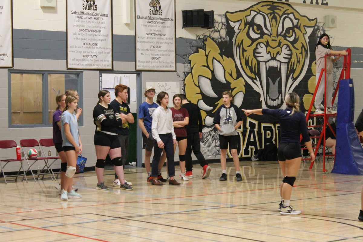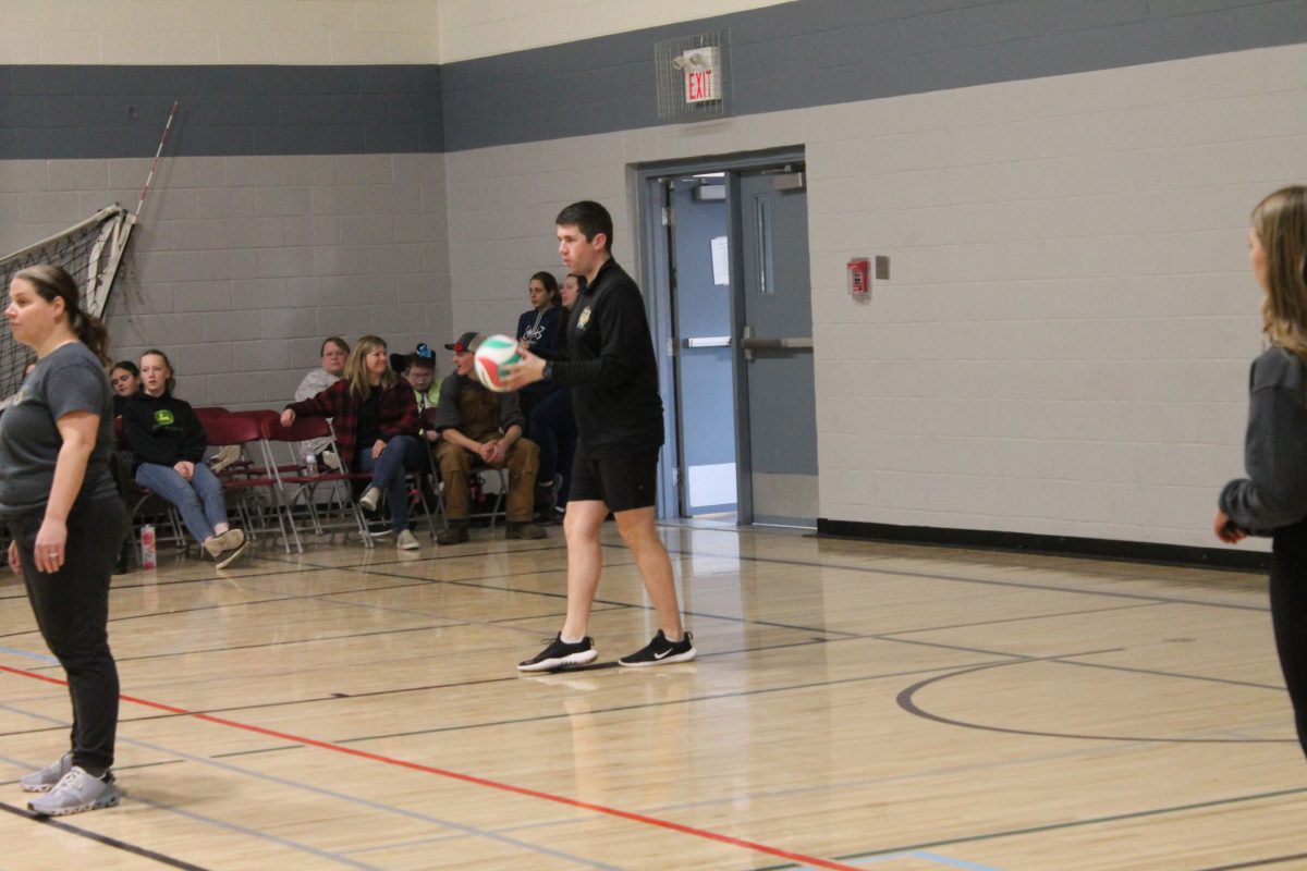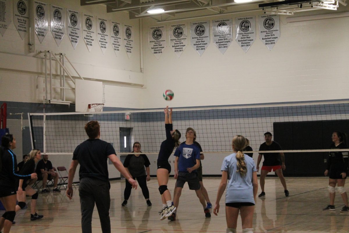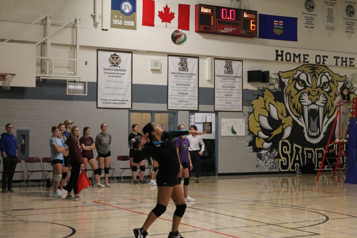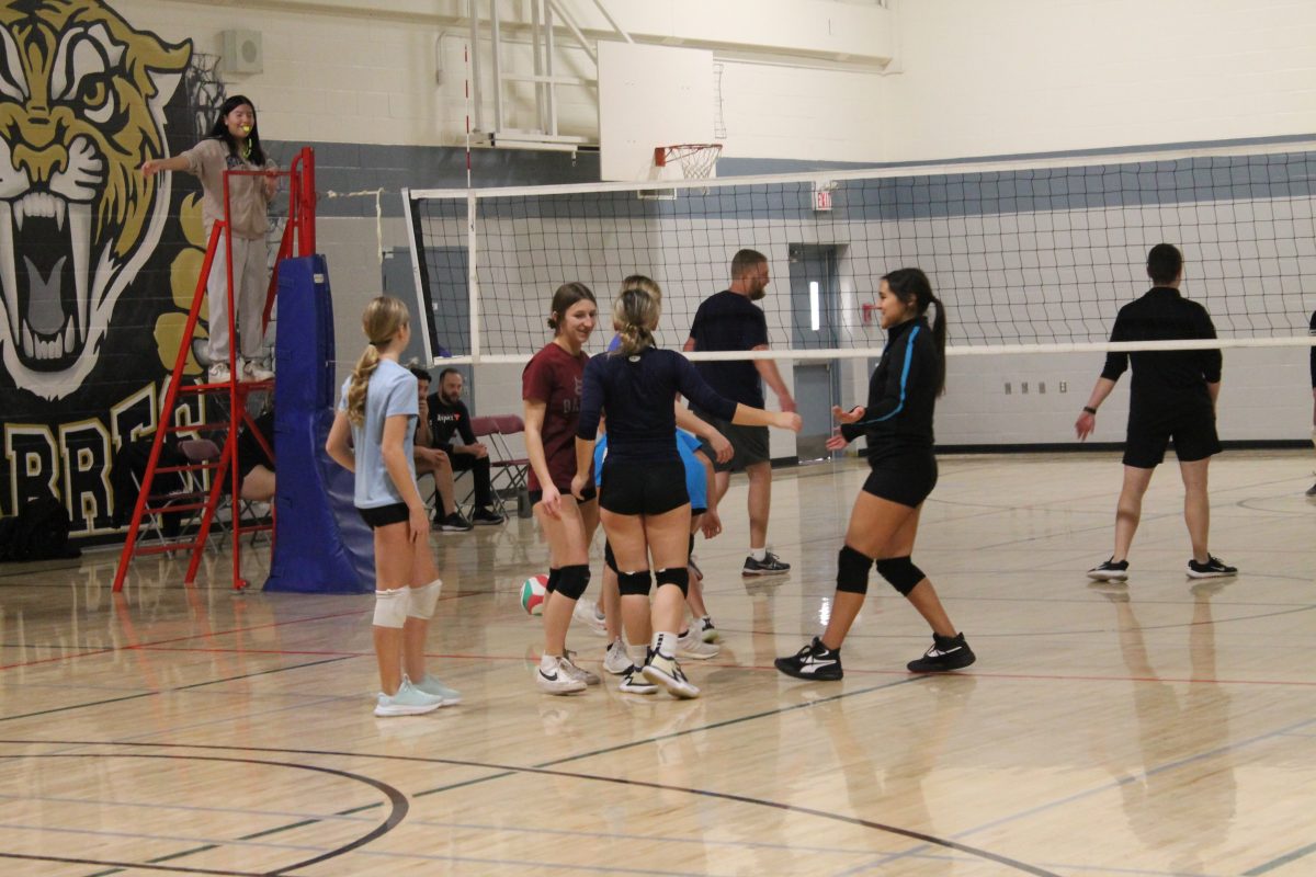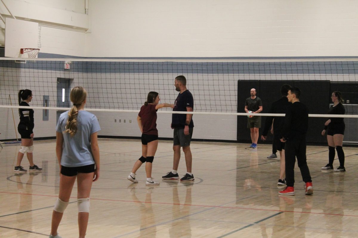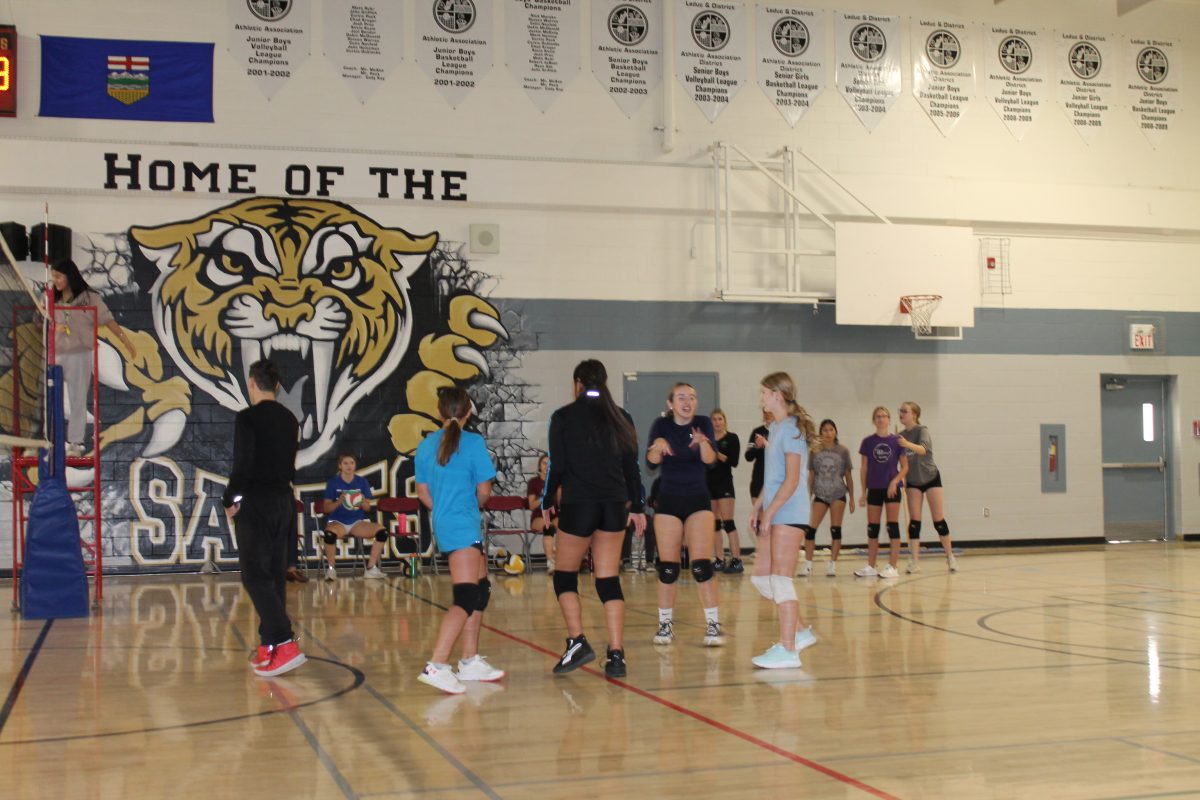 Last Friday we kicked the staff vs student games off with our first of four that will be taking place this year! The staff were up against some strong competition this year as many of the players were on the Sr. Girls volleyball team that placed 2nd at their zone tournament. 3 sets were played in total the staff narrowly defeated the students 2 sets to 1. All sets were within 5 points of each other and could have gone either way. The students always enjoy playing against the staff and they enjoy it even more when the community members are able to play. Volleyball had special guests RCMP officers Dino and joining the team.