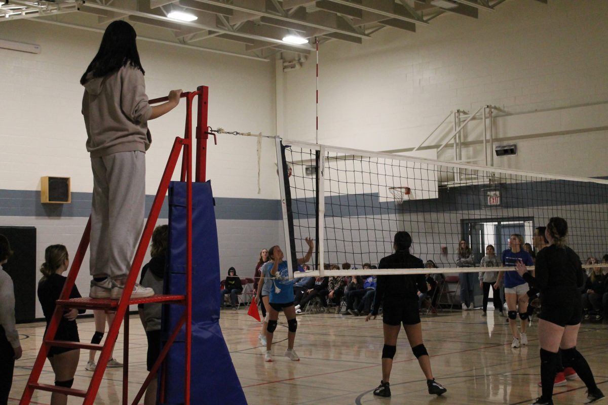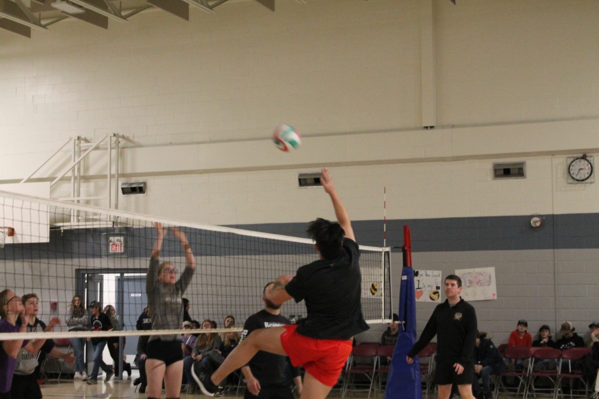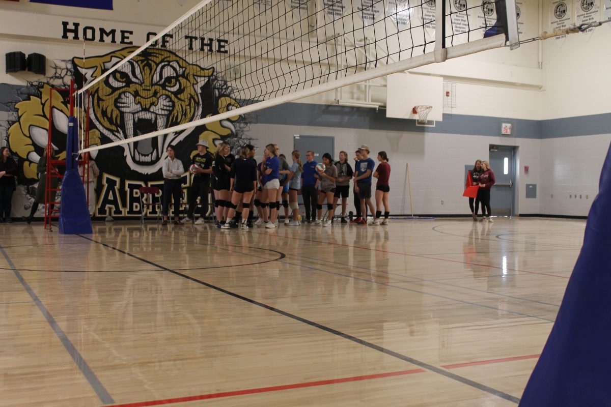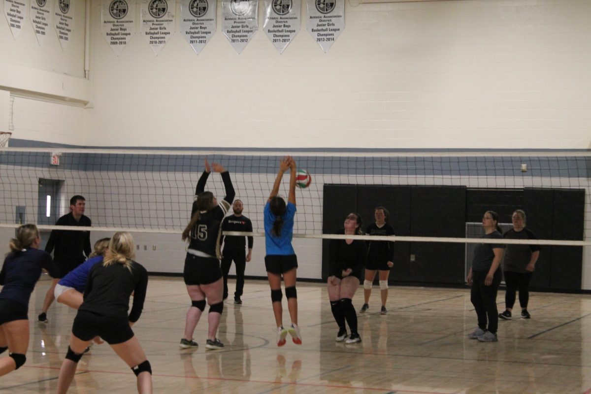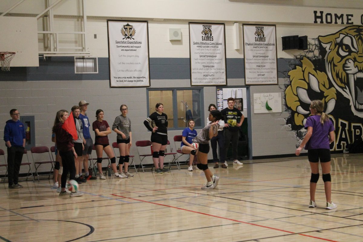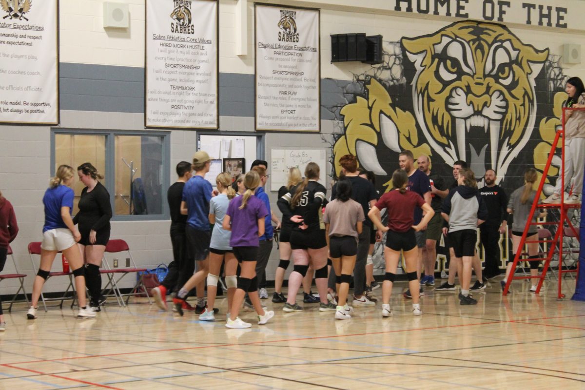 Last Friday we kicked the staff vs student games off with our first of four that will be taking place this year! The staff were up against some strong competition this year as many of the players were on the Sr. Girls volleyball team that placed 2nd at their zone tournament. 3 sets were played in total the staff narrowly defeated the students 2 sets to 1. All sets were within 5 points of each other and could have gone either way. The students always enjoy playing against the staff and they enjoy it even more when the community members are able to play. Volleyball had special guests RCMP officers Dino and joining the team.